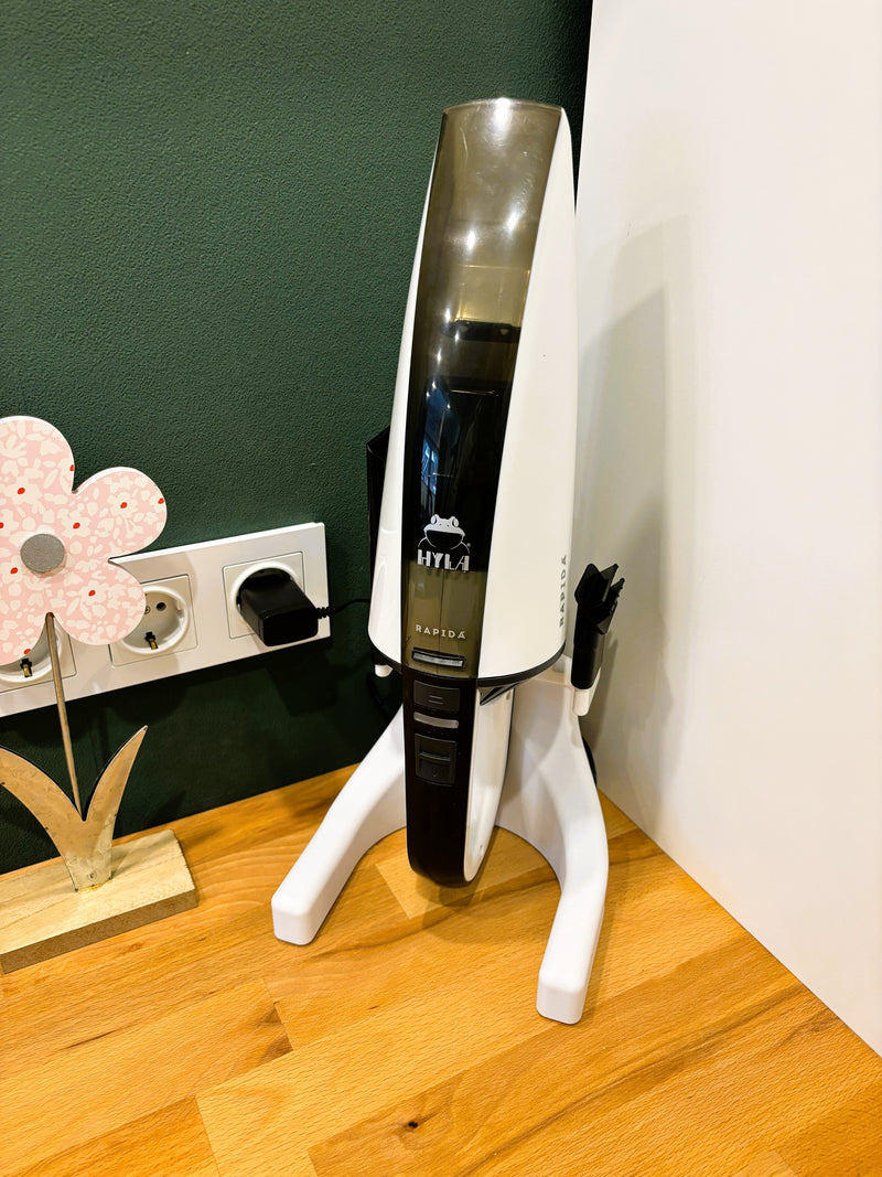 The Hayla Rapida stand is the ideal solution for anyone who wants to store their handheld vacuum cleaner flexibly and securely – without drilling into walls or tile backsplashes.